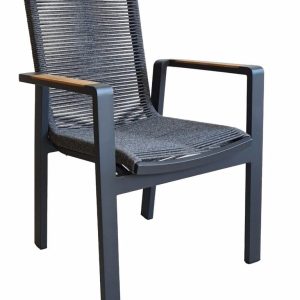 Ogrodje garniture je izdelano iz trpežnega aluminija, prašno barvanega v antracit odtenek, kar zagotavlja odpornost proti koroziji in vremenskim vplivom. Pletenje iz UV odpornega umetnega ratana doda naraven pridih ter omogoča dolgo življenjsko dobo brez posebnega vzdrževanja. Za vrhunsko udobje so del garniture tudi oblazinjeni sedeži, ki zagotavljajo sproščeno sedenje in popolno estetsko dovršenost.