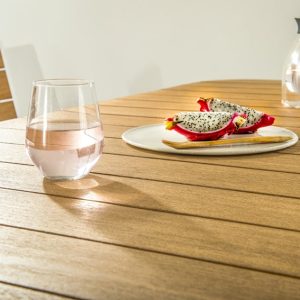 Zahvaljujoč stabilnemu in močnemu aluminijastemu podnožju je miza izjemno trdna, hkrati pa lahka za premikanje. Njena vremenska odpornost omogoča brezskrbno uporabo na prostem, ne glede na letni čas. Kaljeno steklo s keramičnim videzom doda pridih elegance in sofisticiranosti ter je enostavno za čiščenje.
