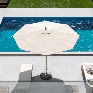 Senčnik Vespucci s stranskim drogom je zasnovan za profesionalno dejavnost in za uporabo kjer so mogoče zahtevnejše vremenske razmere. Močna lesena konstrukcija je iz lesa iroko v kombinaciji z aluminijem in jeklenim podstavkom.