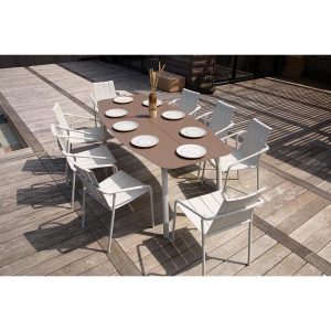 - Lahka in prenosljiva zasnova – ...Aluminijasto pohištvo je izjemno lahko in omogoča preprosto prestavljanje in prilagajanje postavitve na vrtu ali terasi. Ta lastnost je še posebej cenjena pri gostinskih in hotelskih objektih, kjer je pogosto treba preurejati zunanje prostore glede na potrebe strank.